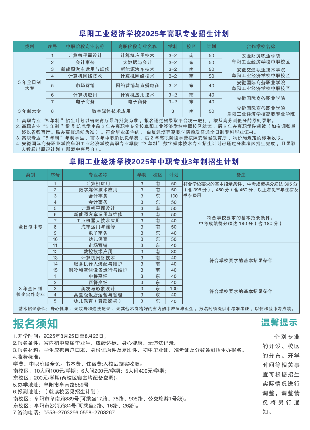 阜阳工业经济学校职普融通试点班2025年招生简章