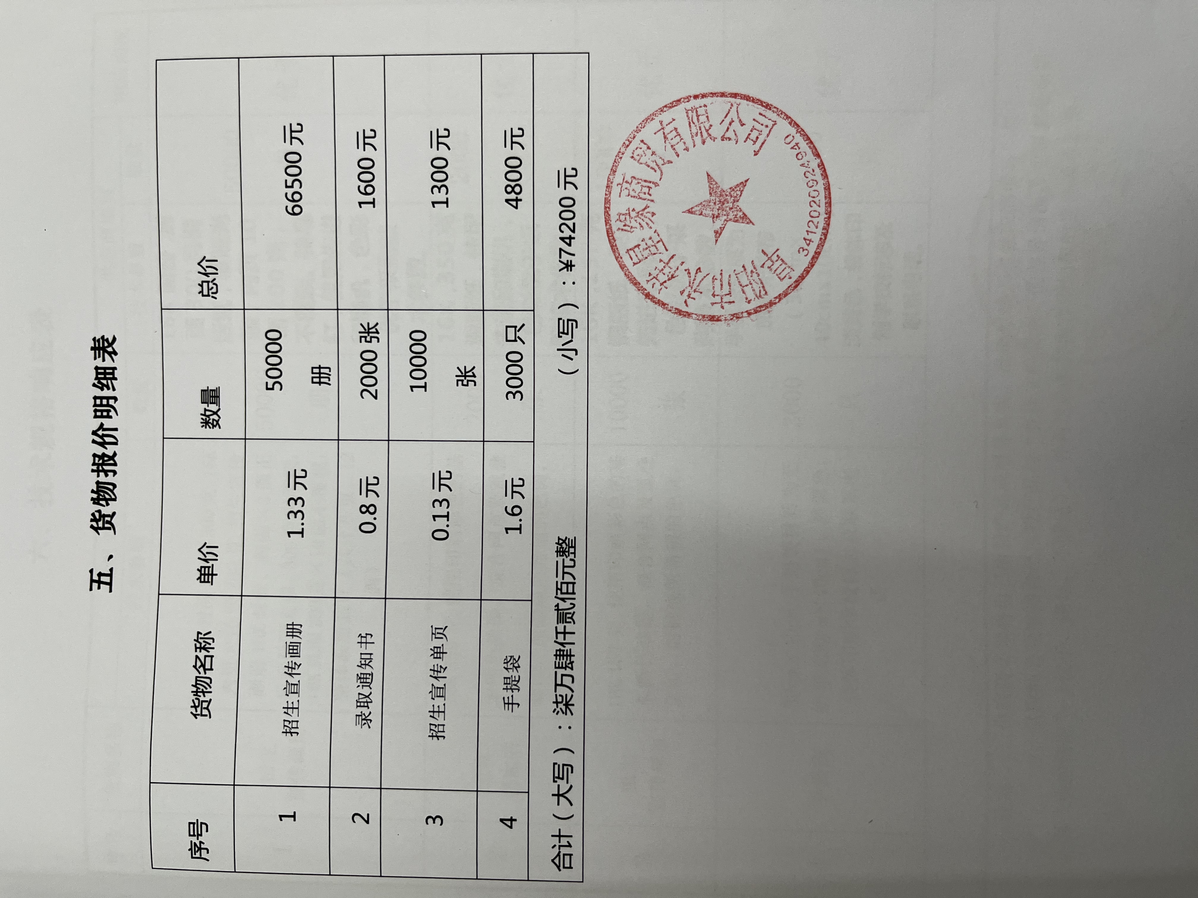阜阳工业经济学校招生简章画册、录取通知书、招生宣传单页及手提袋采购项目成交公示
