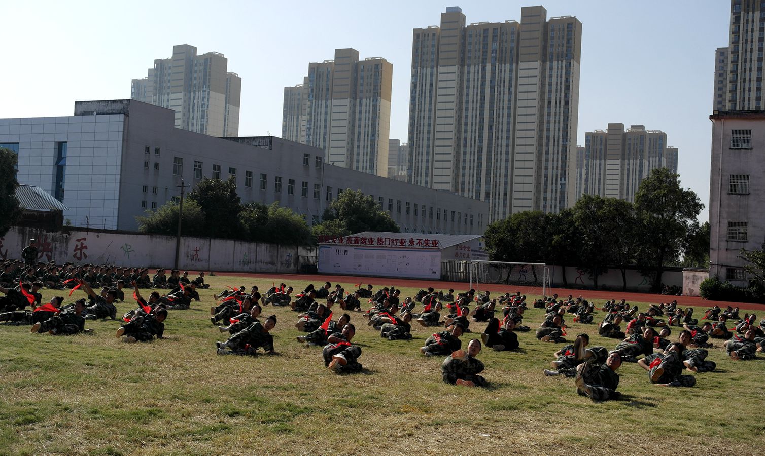 今年的新生军训表演,和往年不同。当方队的新生们在操场后方集结完毕之后,多名身着迷彩作战服、手持步枪的“特种兵”矫捷入场,侧扑、前扑、前滚翻、匍匐前进、模拟射击,进行一场模拟反恐作战……师生喝彩阵阵。希望通过这些军训项目的增加,锻炼同学们的拼搏精神、组织纪律观念,加强军事及身体素质。