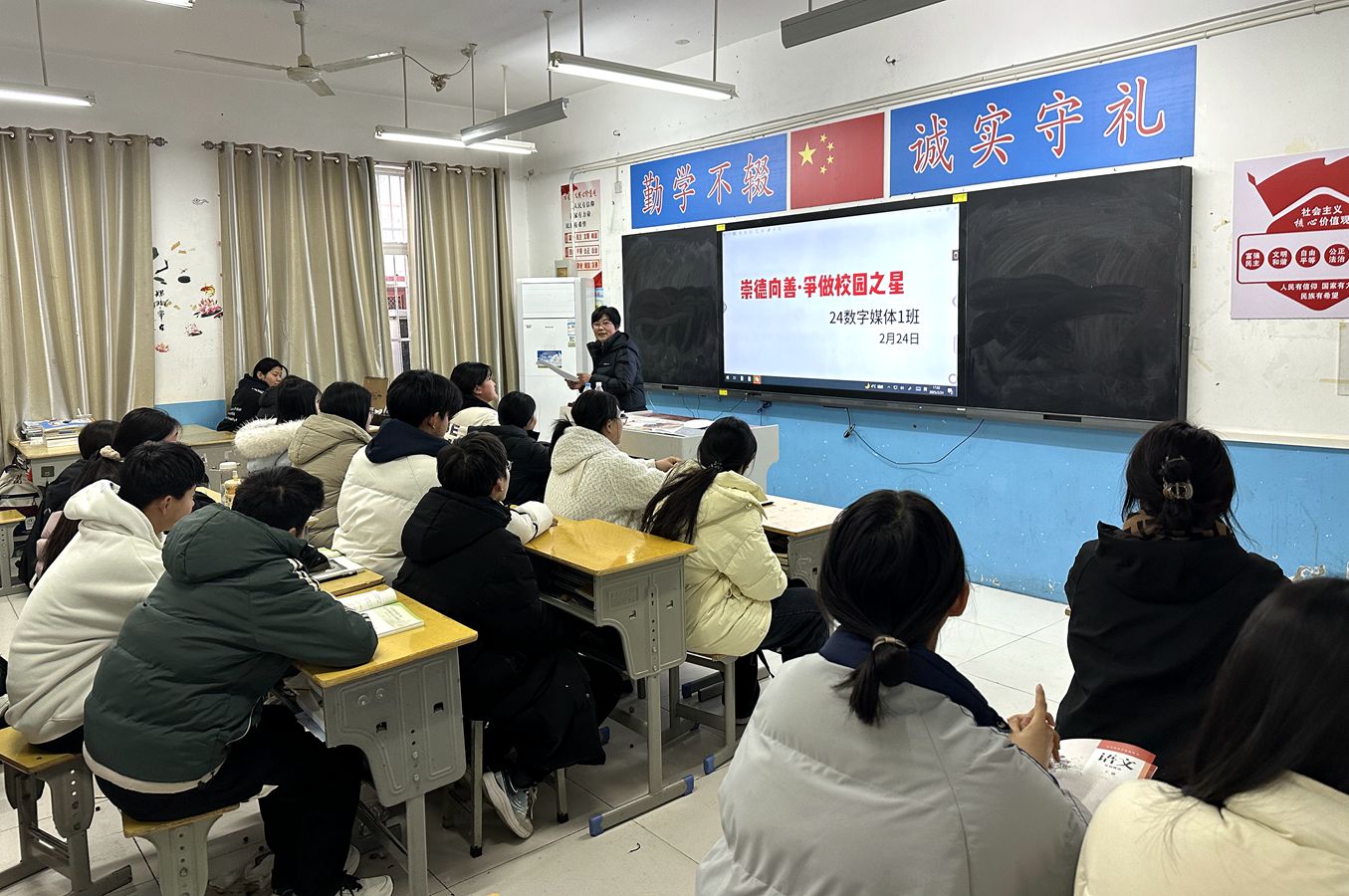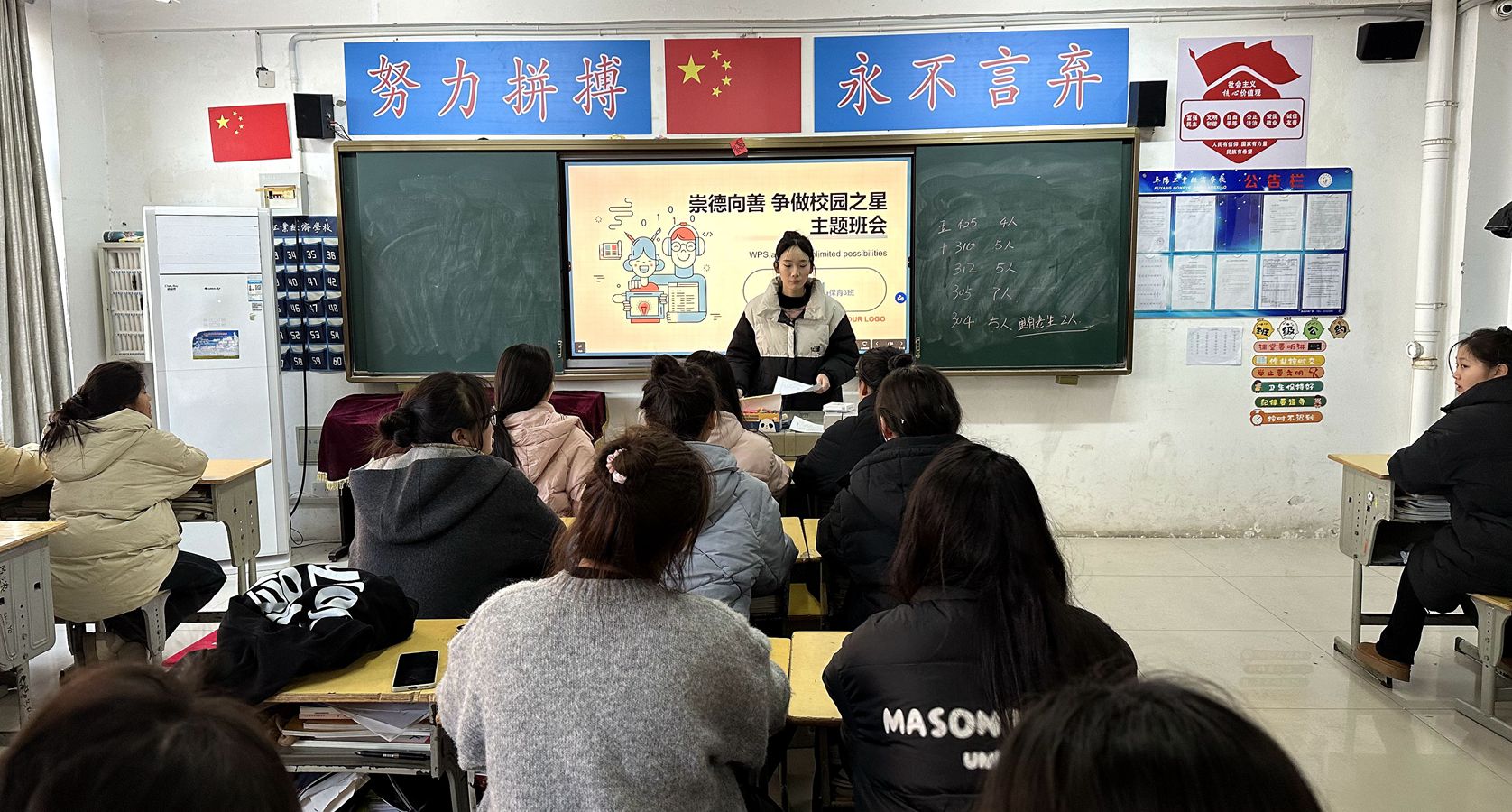各班级积极响应,并于2025年2月24日下午第三节课开展了以“崇德立善,争当校园之星”为主题的宣传活动。通过主题班会的形式,向同学们详细介绍了评选活动的意义、标准和流程,激发了同学们的参与热情。同学们纷纷表示,将以“校园之星”为榜样,努力提升自我,争取在活动中脱颖而出。