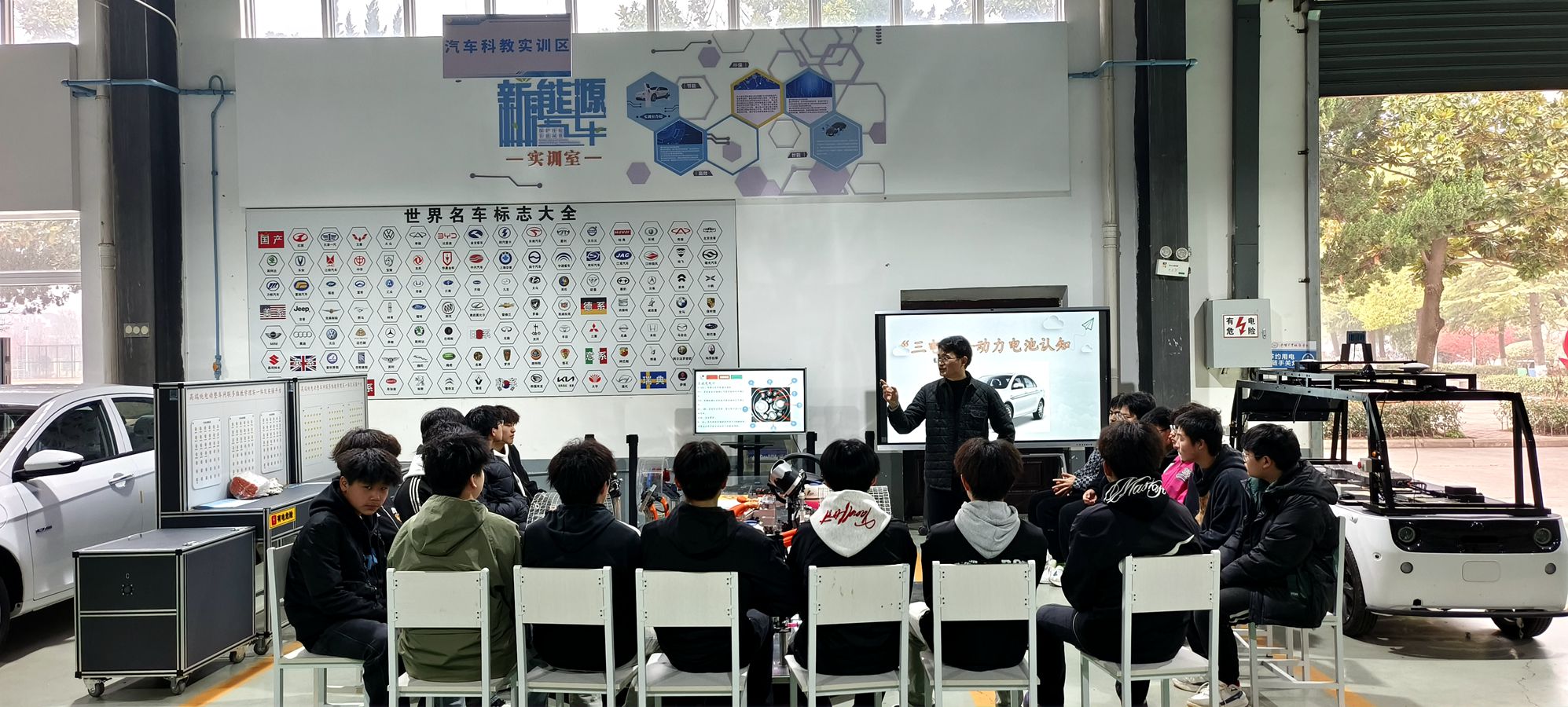 3 月 12 日上午第1节课,时本强老师在2024级新能源汽修(2)班开展《 “三电”——动力电池认知》公开课示范教学。课堂上,时老师“讲”“练”结合,通过深入讲解动力电池内部构造,让学生了解中国在新能源汽车领域的科技创新成果,激发学生的文化自信,使学生们为国家的科技实力感到自豪。同时通过实训台架上的小组合作与练习,鼓励学生们勇于展现自我、表达观点,提升对所学专业的认同感。