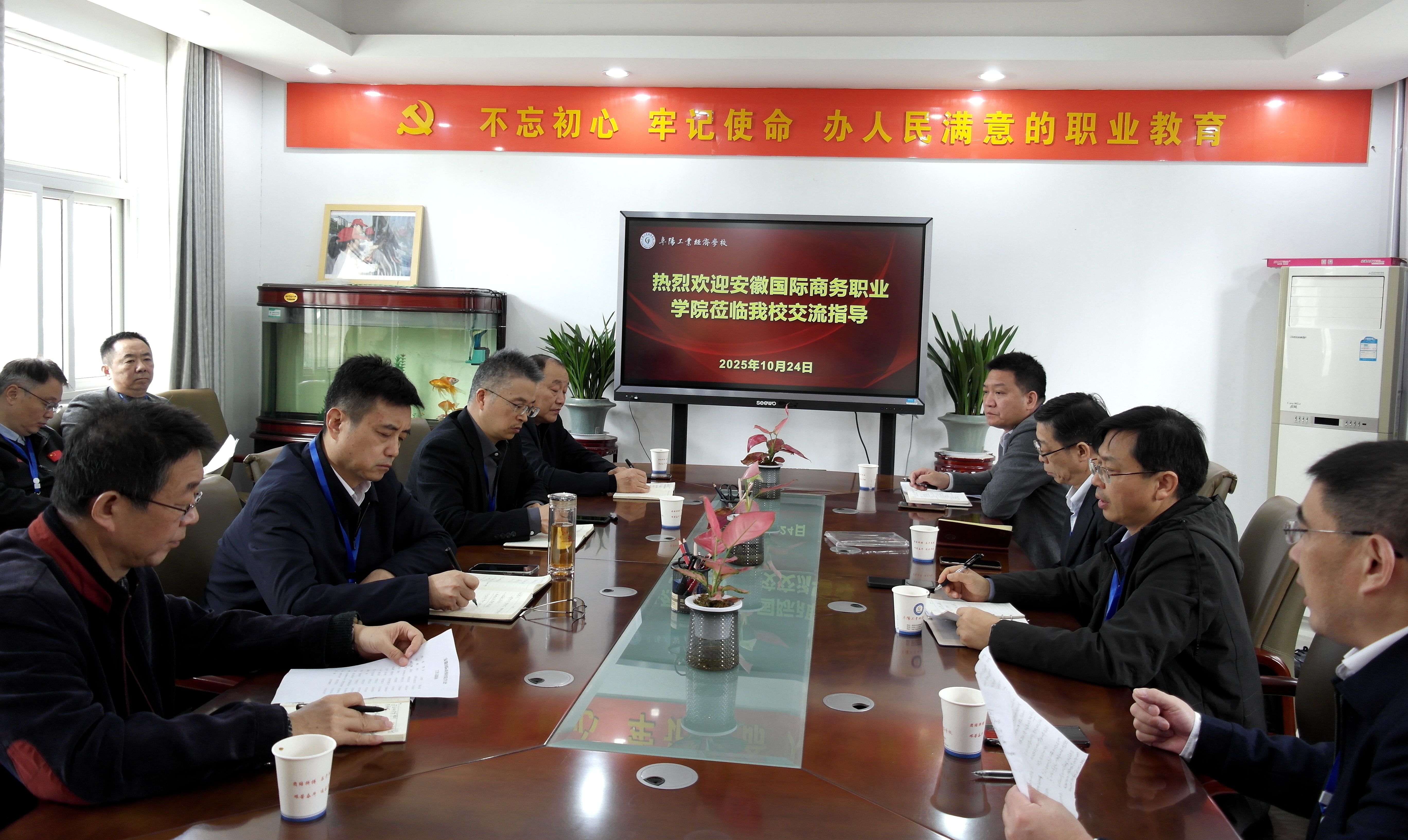 仪式后,高校领导、企业领导一行在阜阳工业经济学校领导陪同下,参观了数控、汽修、机器人、财会等重点专业实训室,并召开交流座谈会。全体参会人员合影留念,定格这一意义非凡的时刻。