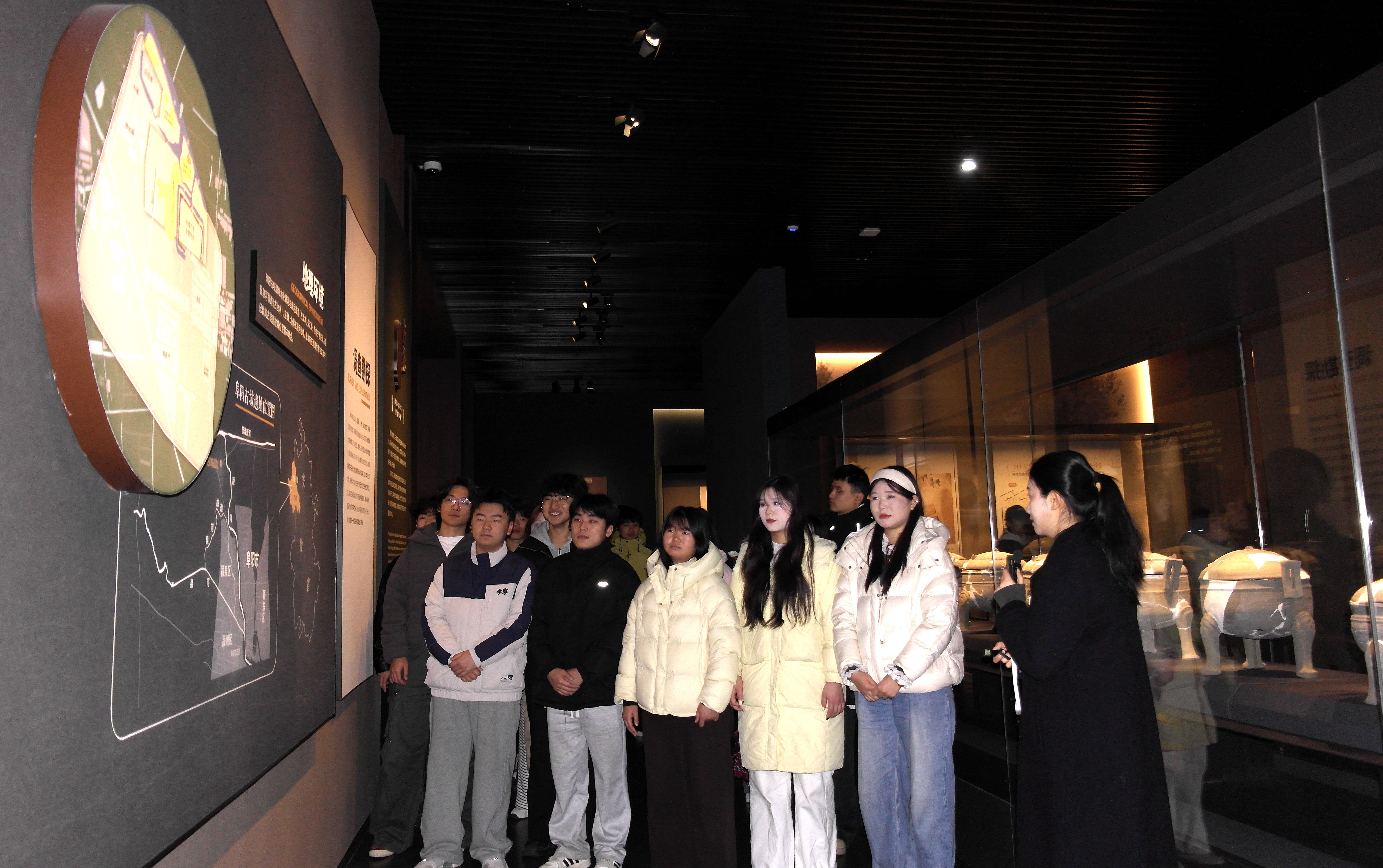 为深化“大思政课”实践育人成效,将专业素养培育与文化传承教育深度融合,12月23日,安徽国际商务职业学院阜阳高职专业学院(阜阳工业经济学校)组织2025级数字媒体技术应用(2)班全体学生,在辅导员及专业教师的带领下赴阜阳市博物馆开展“探千载名城 寻颍州文脉”主题研学活动,让学生在行走中触摸历史温度,在感悟中坚定职业理想。​