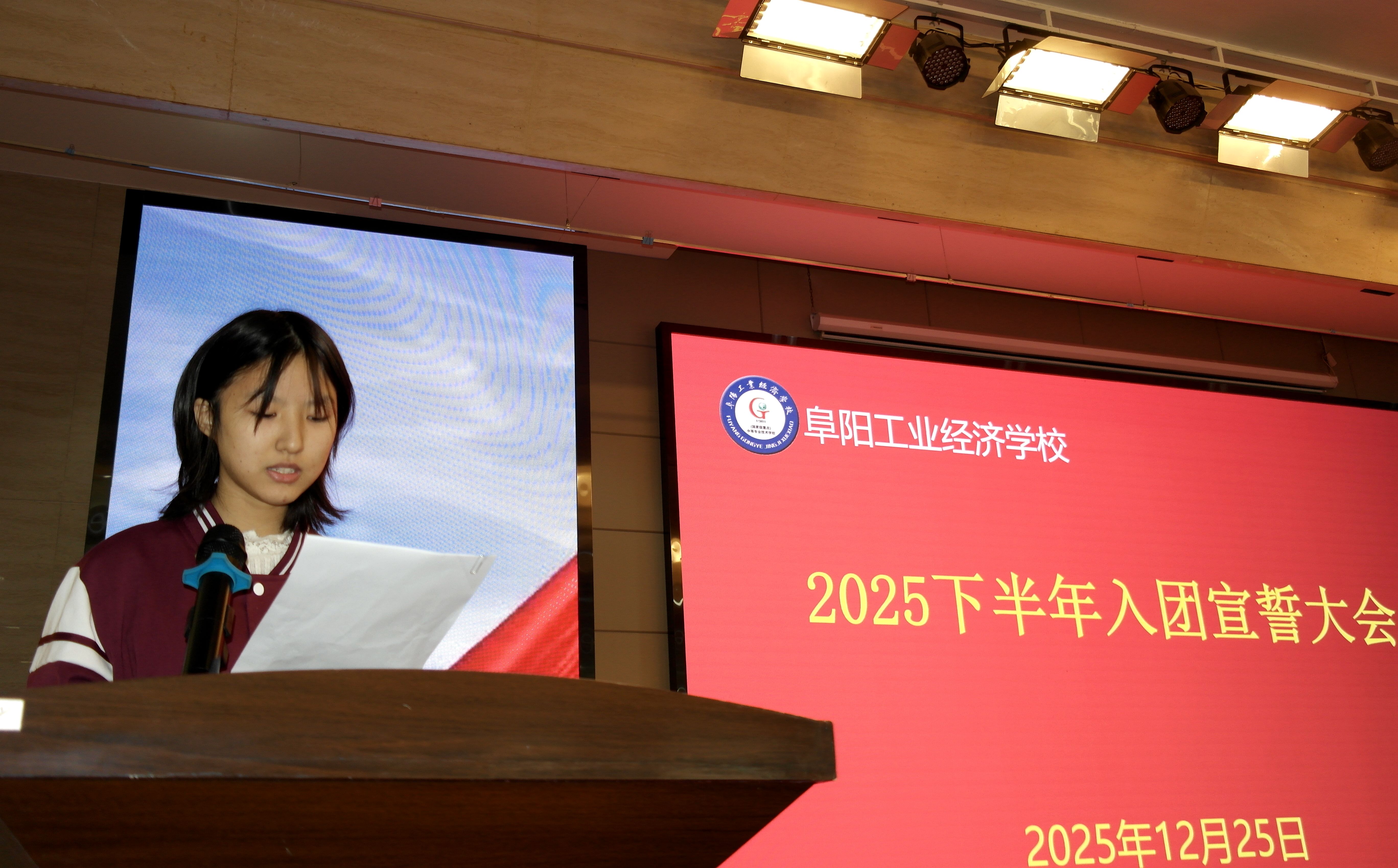 为凝聚青春磅礴之力、夯实团的组织根基,让新团员于入团仪式中坚定信仰方向、扛起青春使命。12月25日,校团委在南校区报告厅举行了阜阳工业经济学校2025年第二批新团员入团仪式。校党委副书记、校长孙杰,党委委员、副校长范峰、校团委老师及第二批全体新发展团员参加仪式。