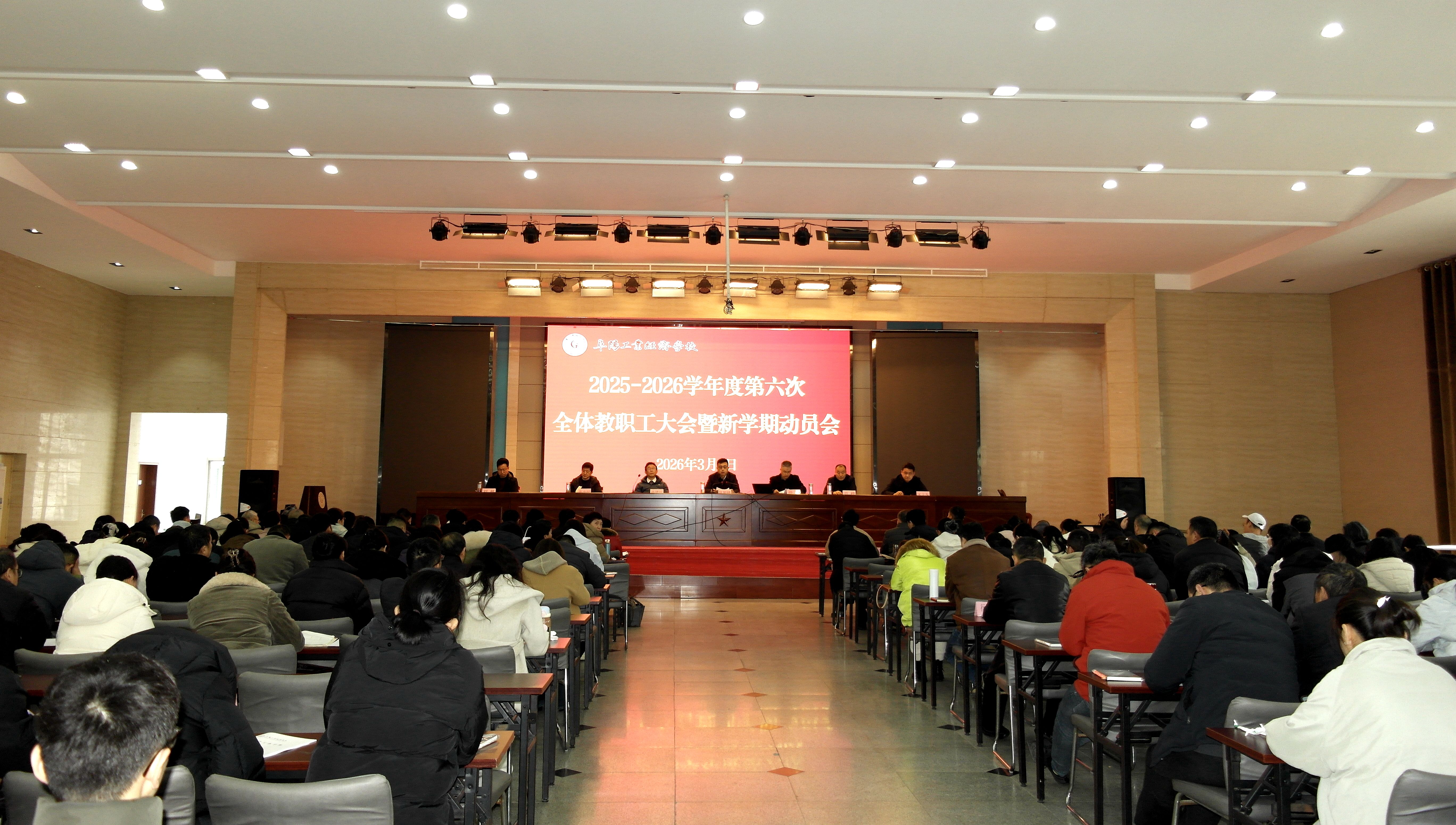 3月4日上午,阜阳工业经济学校召开2025--2026学年度第六次全体教职工大会暨新学期动员会,校党委书记陈颍峰出席会议并作动员讲话,全体教职员工参会。会议由党委副书记、校长孙杰主持。