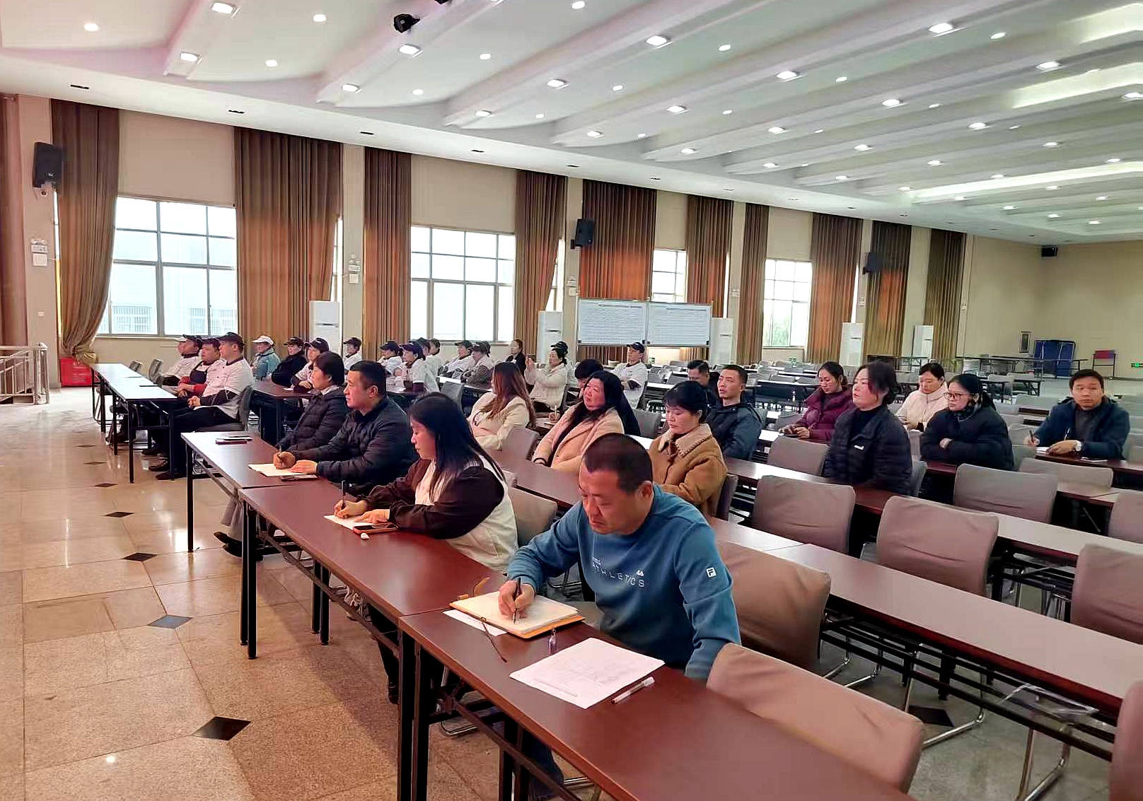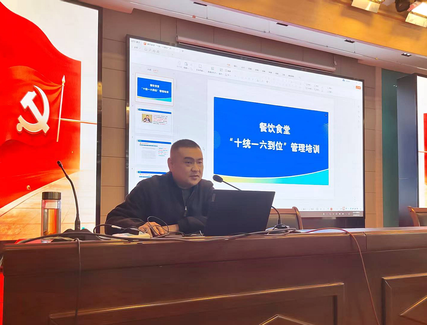 现场办公会后,李玺所长为全体参会人员开展食品安全专题培训。培训围绕“日管控、周排查、月调度”工作机制的落地执行展开,结合实际案例深入解读“十统一、六到位”核心内容,着重强调标准化操作流程对保障校园食品安全的重要意义,要求全体食堂从业人员牢固树立安全意识与责任意识,切实履职尽责,全力守护全校学生的膳食安全。