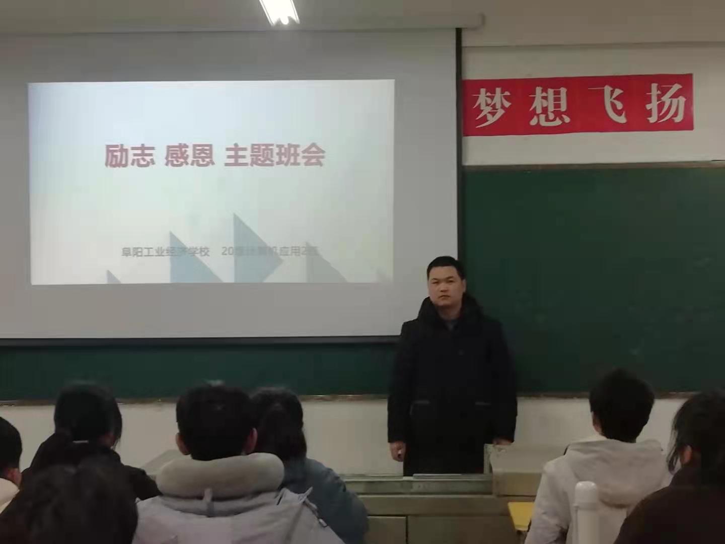 阜阳工业经济学校开展“励志 感恩 诚信”主题班会