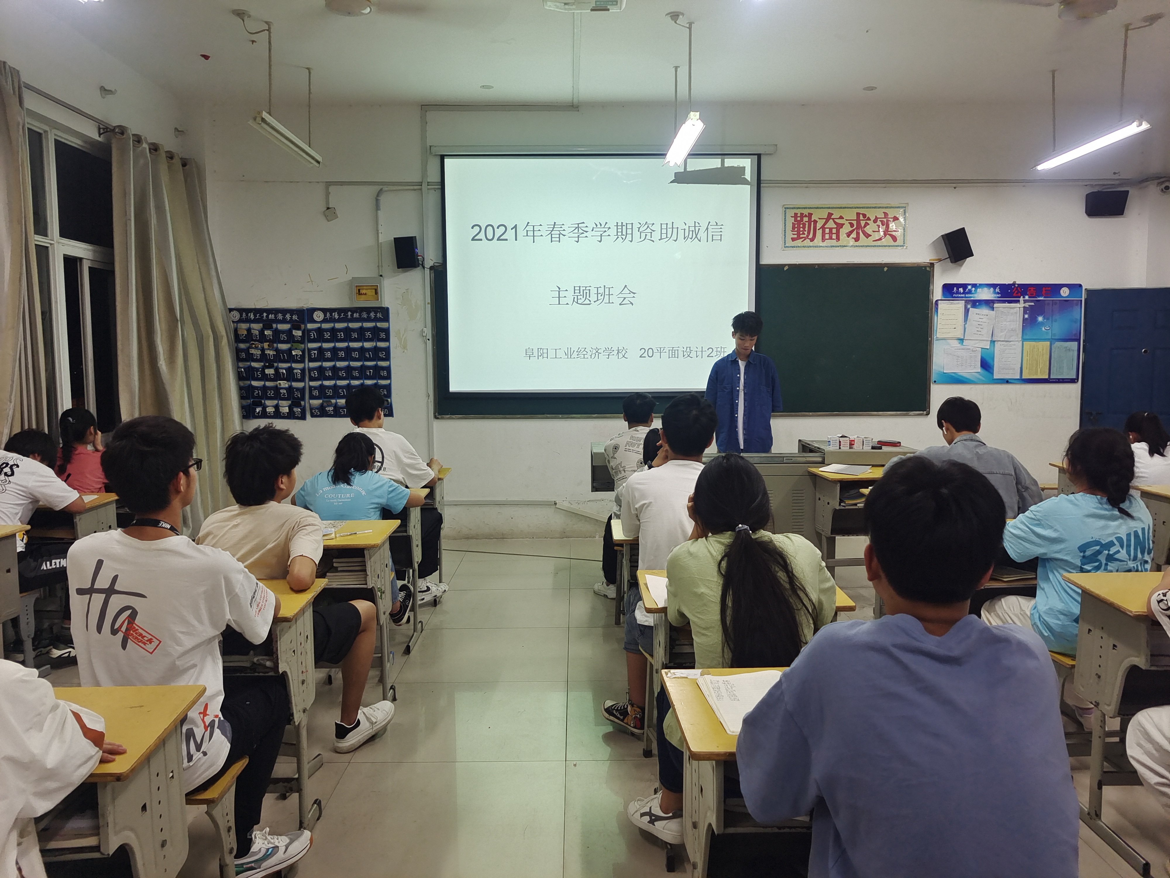 阜阳工业经济学校组织各班级学生开展“资助诚信”主题班会活动