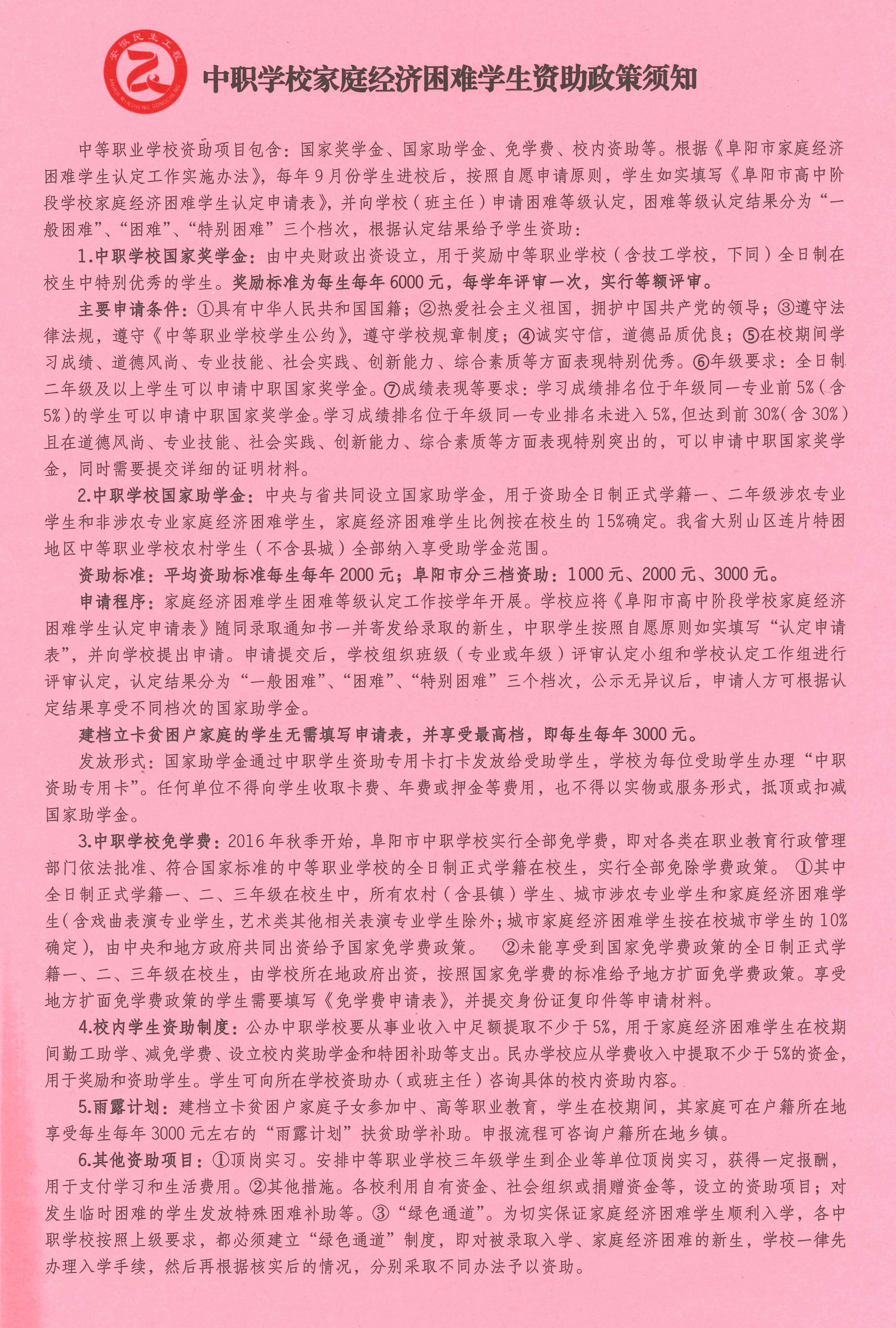 中职学校家庭经济困难学生资助政策须知