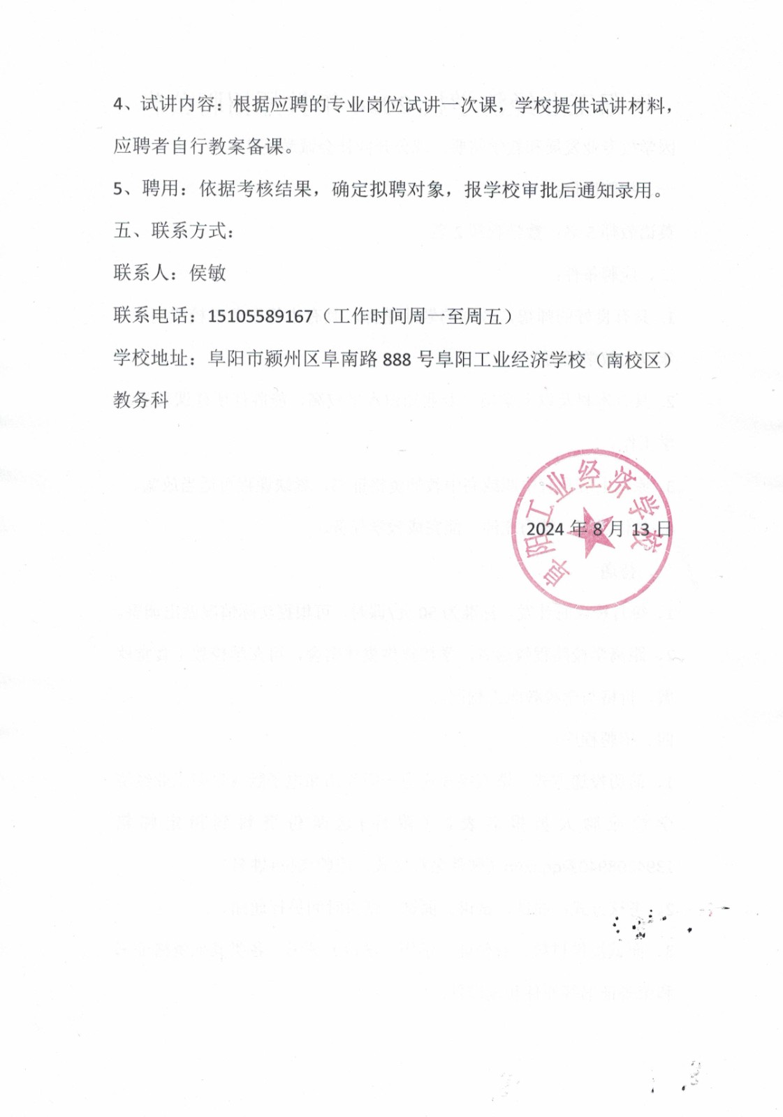 阜阳工业经济学校2024年外聘教师招聘公告