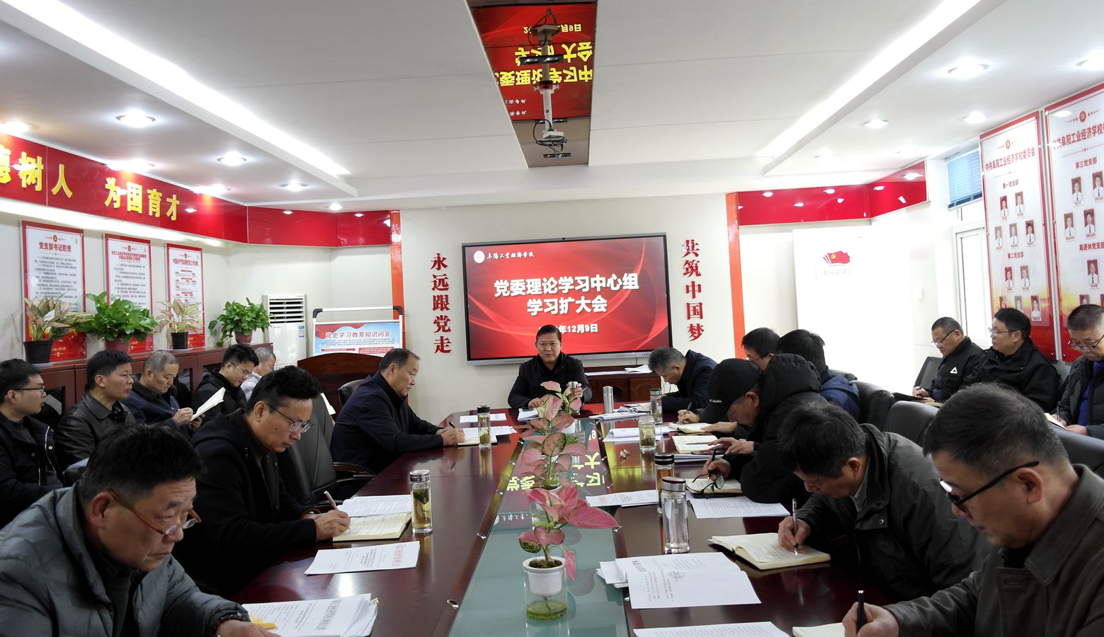 12月9日,阜阳工业经济学校召开党委理论学习中心组学习扩大会,校党委书记周波主持会议并讲话,校班子成员、各科处室负责人参加会议。会议采取集中学习和交流发言形式进行,党委成员作重点发言,部分科处室负责人作交流发言。