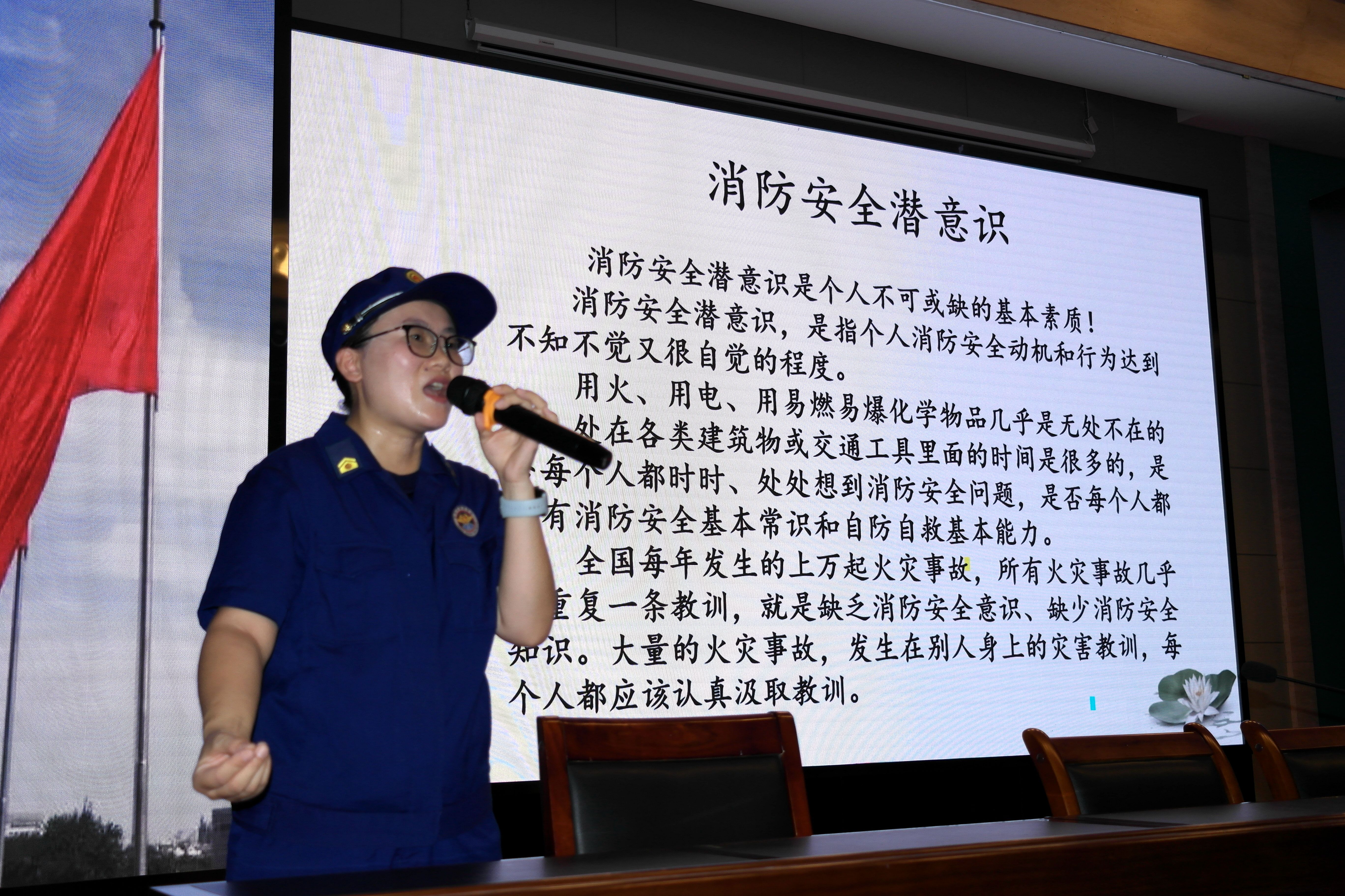 颍州区消防救援大队张层层教官结合校园真实火灾案例,深入浅出剖析火灾成因与危害,系统讲解预防措施,同时现场演示灭火器、消火栓等器材的操作流程,并通过视频展播、互动问答等形式调动学习热情,帮助新生切实掌握消防技能。
