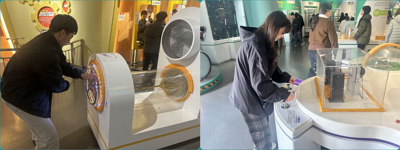 活动现场,学生们满怀期待地踏入科技馆,在展教员的带领下,学生们有序参观科技馆的各个展厅,他们动手操作、亲身体验展品,深入探索力学、声学、光学、量子科技等领域的奥秘,真切感受科学世界的神奇与魅力。