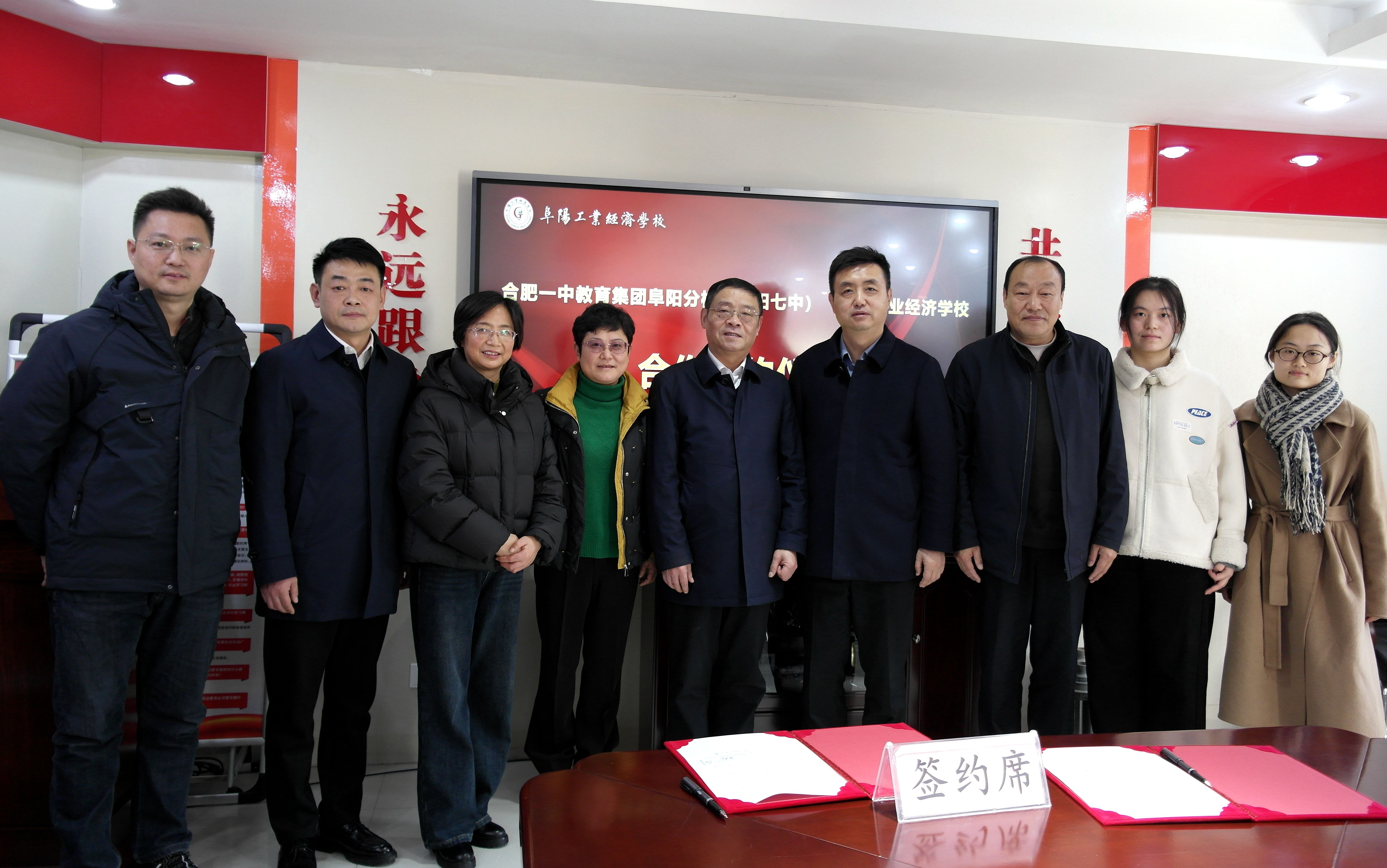 为积极响应《安徽省教育厅关于开展高中阶段教育职普融通试点工作的通知》要求,探索新时代高中阶段育人方式改革,推动普通高中教育与职业教育相互融通,为学生多元化发展提供优质教育资源平台。1月15日,合肥一中教育集团阜阳分校(阜阳七中)与阜阳工业经济学校合作签约仪式在我校隆重举行。合肥一中教育集团阜阳分校党总支副书记、校长聂祥水,总支委员、副校长马磊,合肥一中学科主任及高考语文作文阅卷组长汪梅林,阜阳工业经济学校党委书记陈颍峰,校党委委员、副校长范峰出席仪式。